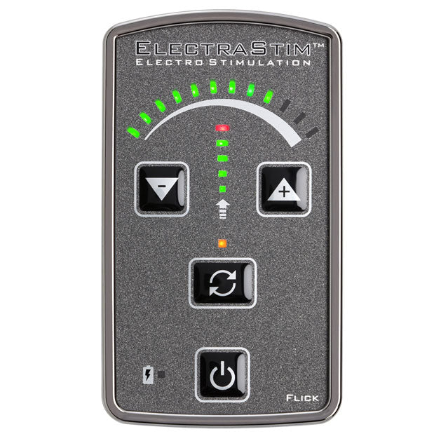 Our ElectraStim Flick pack is the perfect electrosex kit for beginners. It includes our USB rechargeable Flick single channel stimulator and a set of 4 conductive pads for experimenting with external electrostimulation and sharing sensations with a partner. Flick is smaller and slimmer than previous model and it also boasts some extras. There are 7 pre programmed patterns, 24 intensity levels and a motion sympathetic Flick mode that responds to a flicking motion, creating truly customisable patterns. Flick has our standard 2mm pin connecting cable for using alongside with any ElectraStim electrodes.